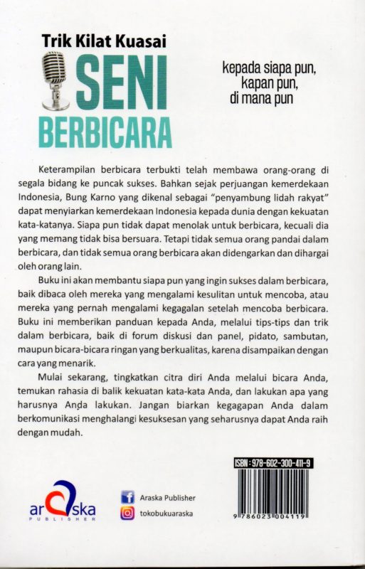 Buku ini akan membantu siapa pun yang ingin sukses dalam berbicara, baik dibaca oleh mereka yang mengalami kesulitan untuk mencoba, atau mereka yang pernah mengalami kegagalan setelah mencoba berbicara.