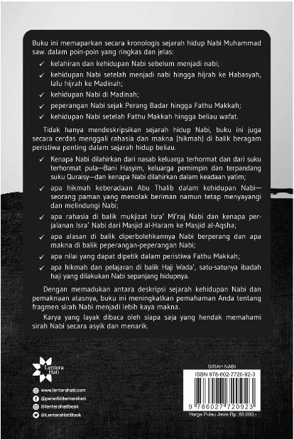 Tidak hanya mendeskripsikan sejarah hidup Nabi, buku ini juga secara cerdas menggali rahasia dan makna (hikmah) di balik beragam peristiwa penting dalam sejarah hidup beliau.
