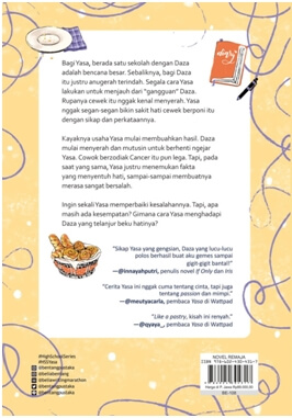 Bagi Yasa, berada satu sekolah dengan Daza adalah bencana besar. Sebaliknya, bagi Daza itu justru anugerah terindah. Segala cara Yasa lakukan untuk menjauh dari “gangguan” Daza. Rupanya cewek itu nggak kenal menyerah. Yasa nggak segan-segan bikin sakit hati cewek berponi itu dengan sikap dan perkataannya.